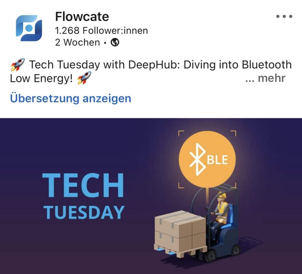 Die Flowcate GmbH arbeitet an richtungsweisenden Technologien im Bereich Industrie 4.0. Ihre Middleware ‚DeepHub‘ ermöglicht es, verschiedene Ortungstechnologien miteinander zu verknüpfen und alle Ortungsdaten in Echtzeit zu verarbeiten. Flowcate ist zudem ein maßgeblicher Partner bei der Definition des offenen Technologiestandards ‚omlox‘ für Ortungsdaten im Industrieumfeld.